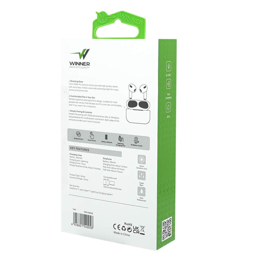 اير بودز 3 , اختبر نقاء الصوت والإبداع مع سماعة وينر الجديدة، المصممة لتمنحك تجربة موسيقية غامرة ووضوحاً استثنائياً في كل مكالمة حيث أنها تعزز يومك ببطارية تدوم طويلاً و خصائص مقاومة للماء والتحكم الذكي لتبقى دائماً في قلب الحدث.