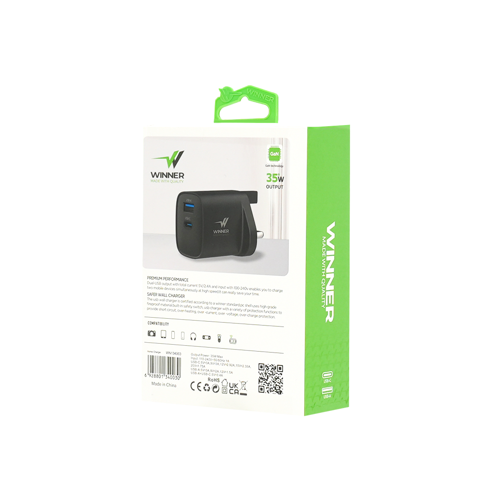 • يوفر قوة شحن 35 وات لضمان شحن الأجهزة المحمولة بسرعة وكفاءة.