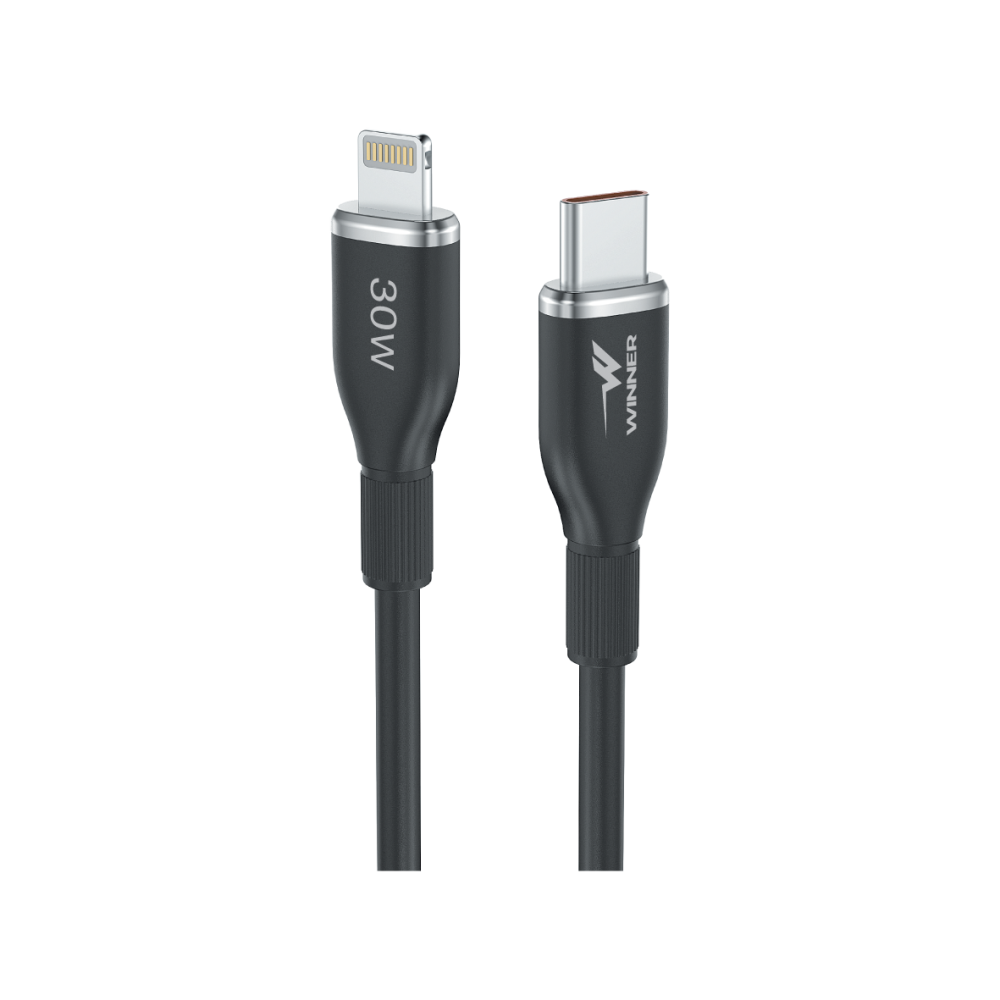 كيبل شحن , إذا كنت تبحث عن كابل يجمع بين السرعة والأناقة والقوة، فـ كابل السيليكون للشحن والبيانات 30 وات تايب سي إلى لايتنينج – اللون الأسود هو خيارك المثالي حيث أنه يأتي بتصميم عصري، أداء عالي، وخامات ممتازة تمنحك كابل يدوم طويلًا ويواكب أسلوبك في كل مكان.