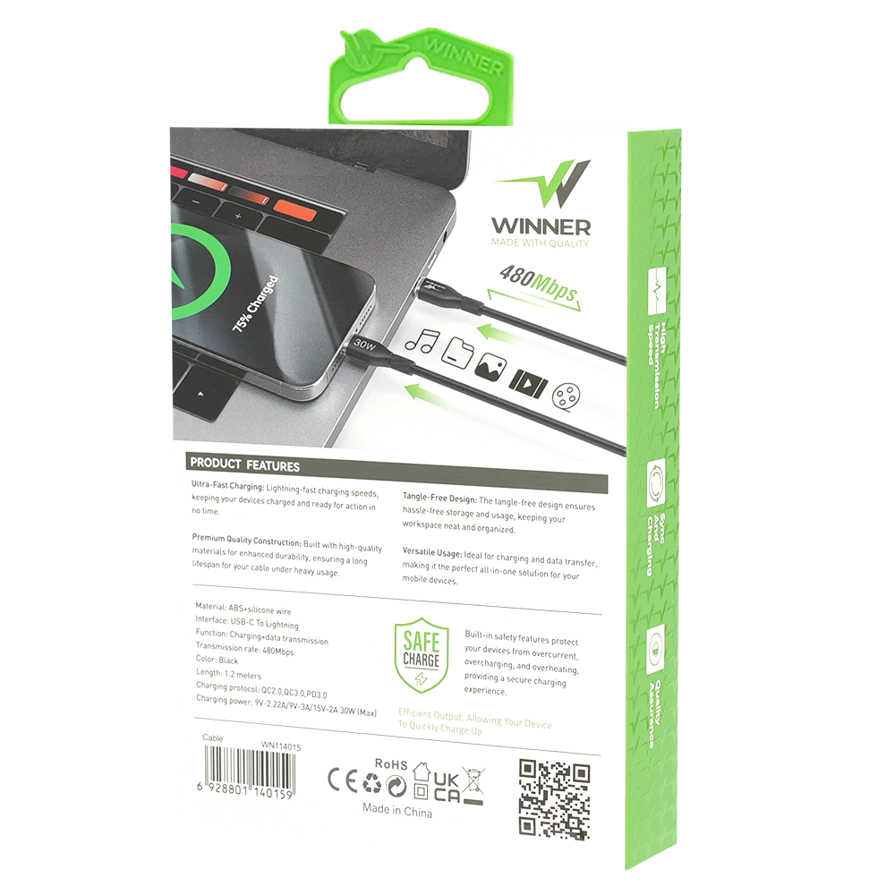 - الاستخدام: شحن سريع + نقل بيانات – متوافق مع أجهزة Apple