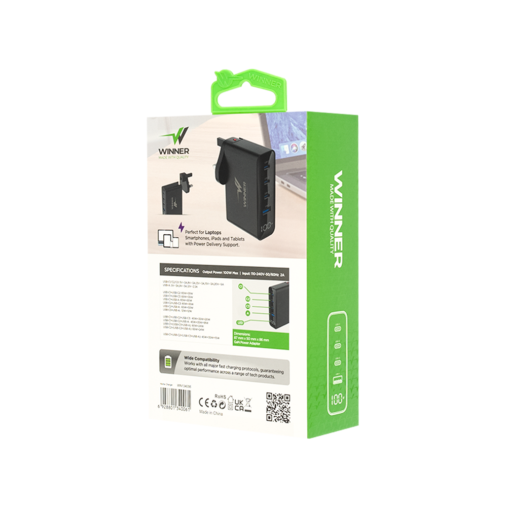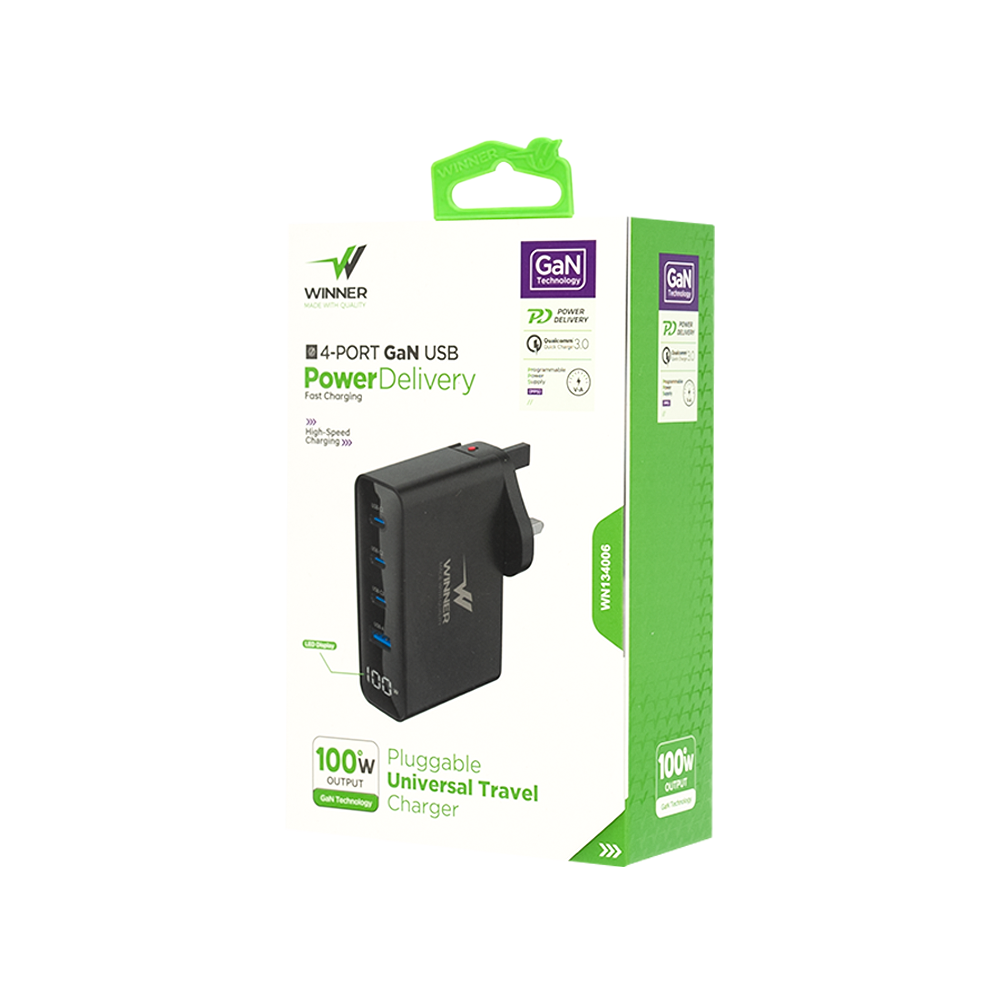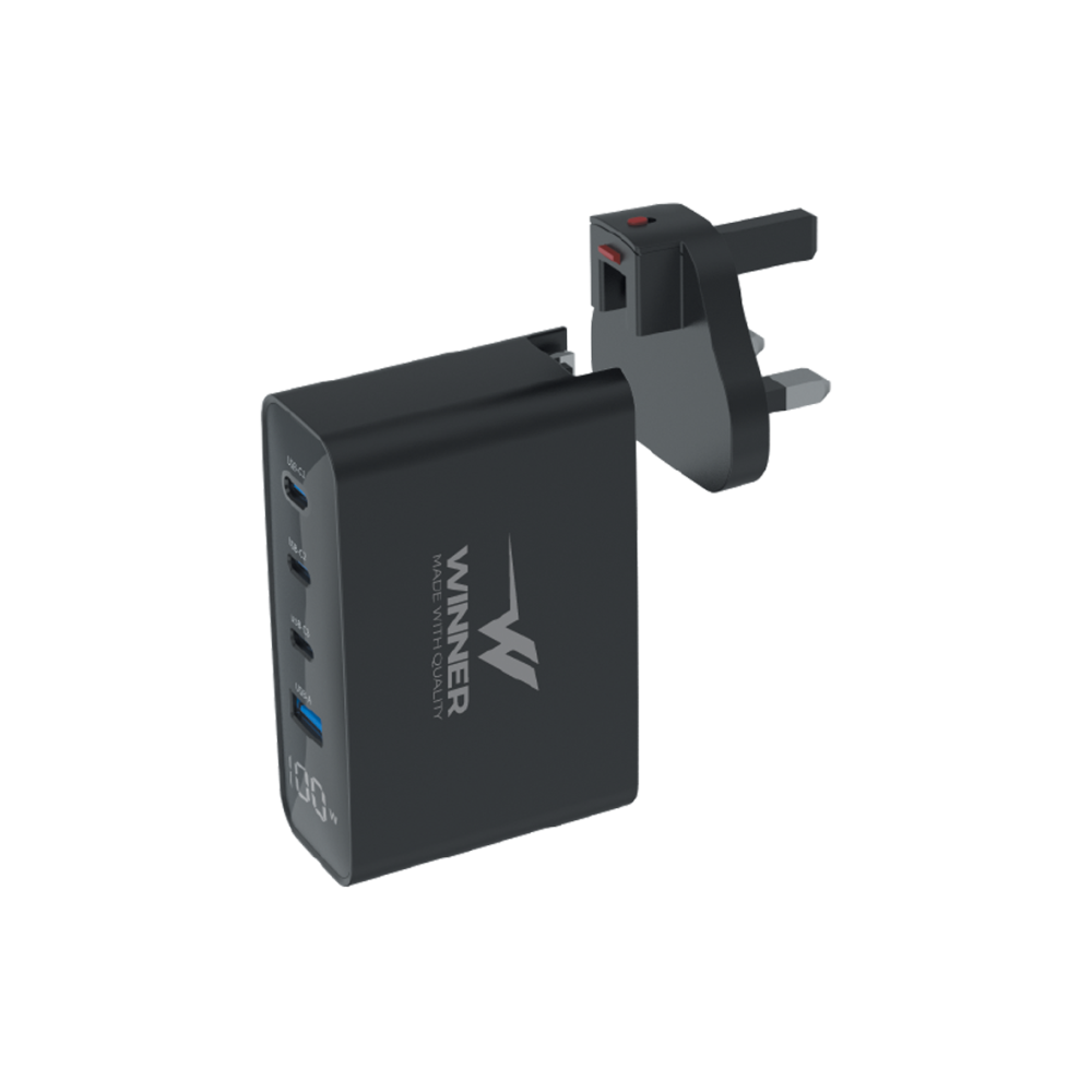 لا تضيع وقتك في شواحن بطيئة أو كثيرة الأسلاك واطلب منصة الشحن الجداري بقوة 100 وات من Winner Electronics هي الحل المثالي لتجربة شحن ذكية وسريعة وآمنة.