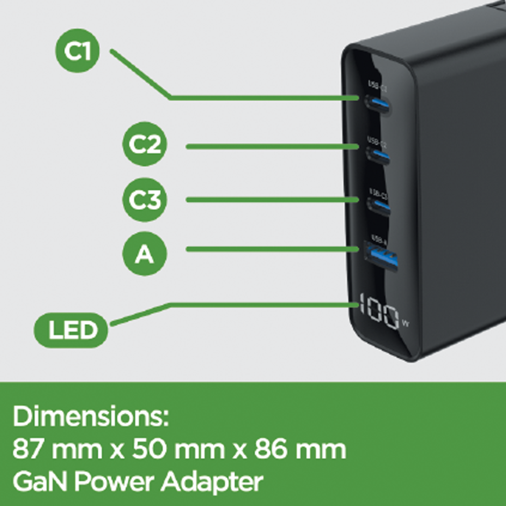 • شحن ثابت ومستقر بفضل توفير 100 وات من الطاقة القوية التي تضمن لك شحن عدة أجهزة في وقت واحد دون مشاكل.